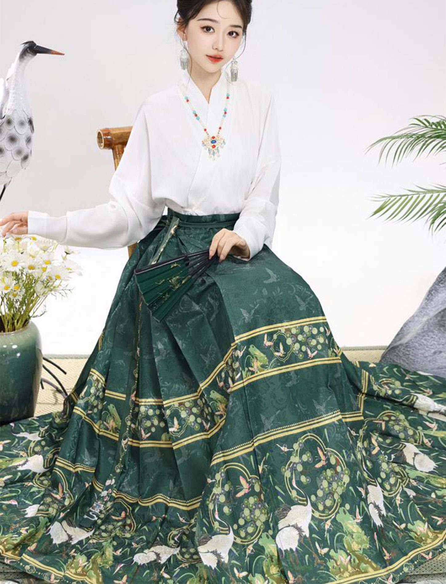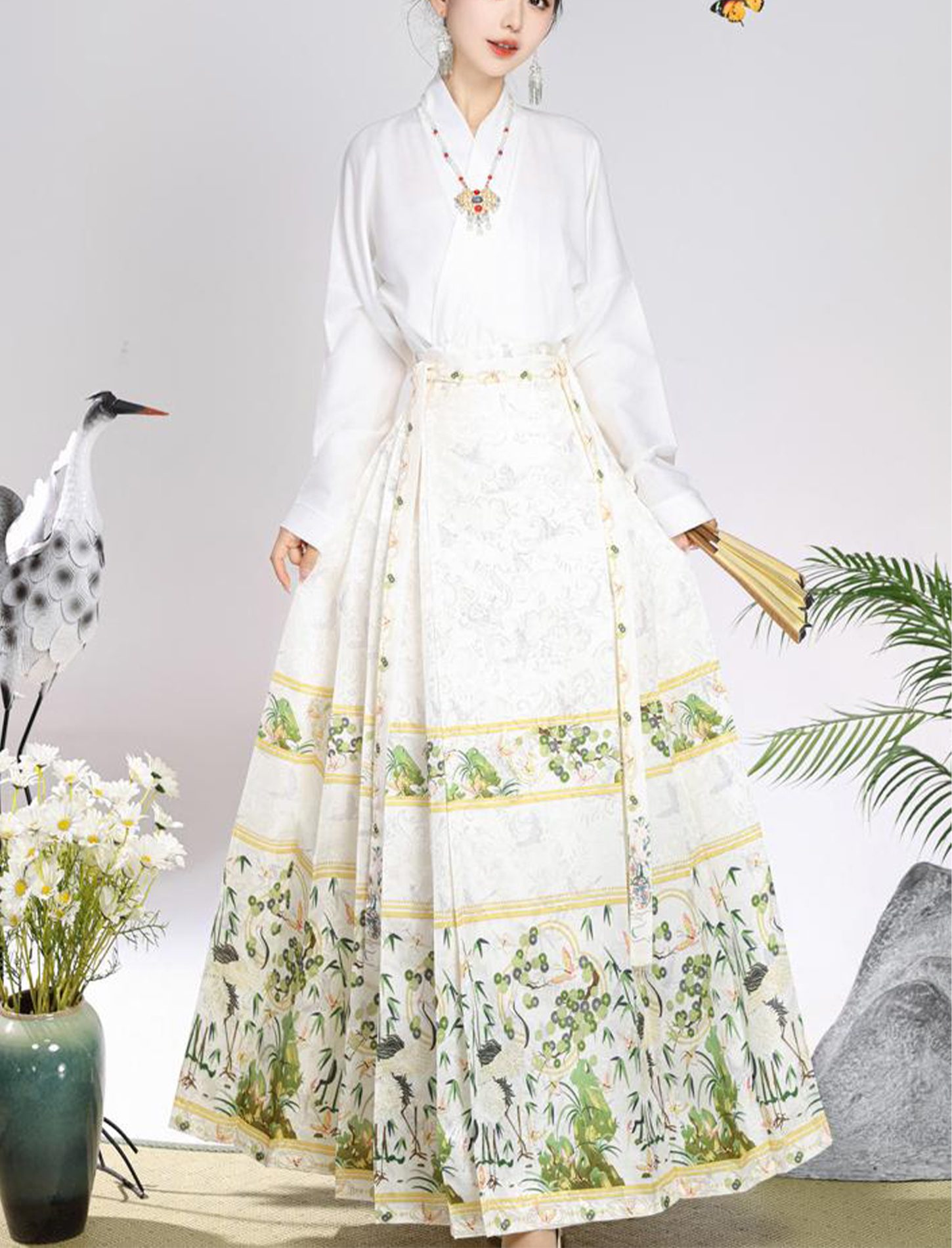 【 鹤鸣 】Mamian Skirt Daily Improved Commuter New Chinese Peplum Set Hanfu Ming System National Style