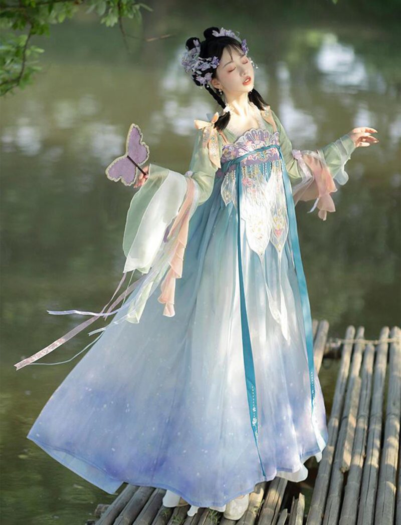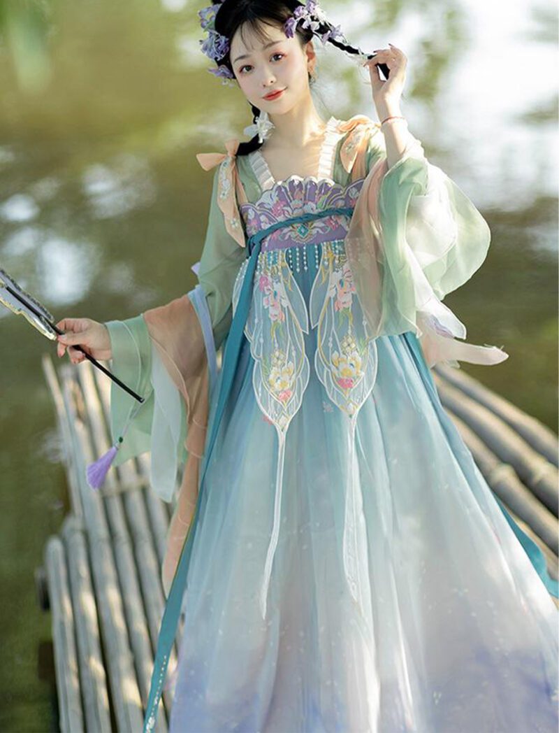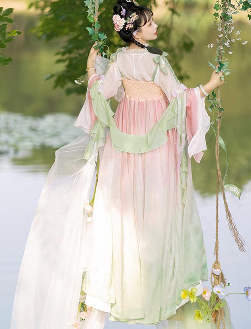 【 春晚嫣雨 】Tang Dynasty Flared Long Sleeve Shirt Fairy Dress Ancient Embroidery Hanfu