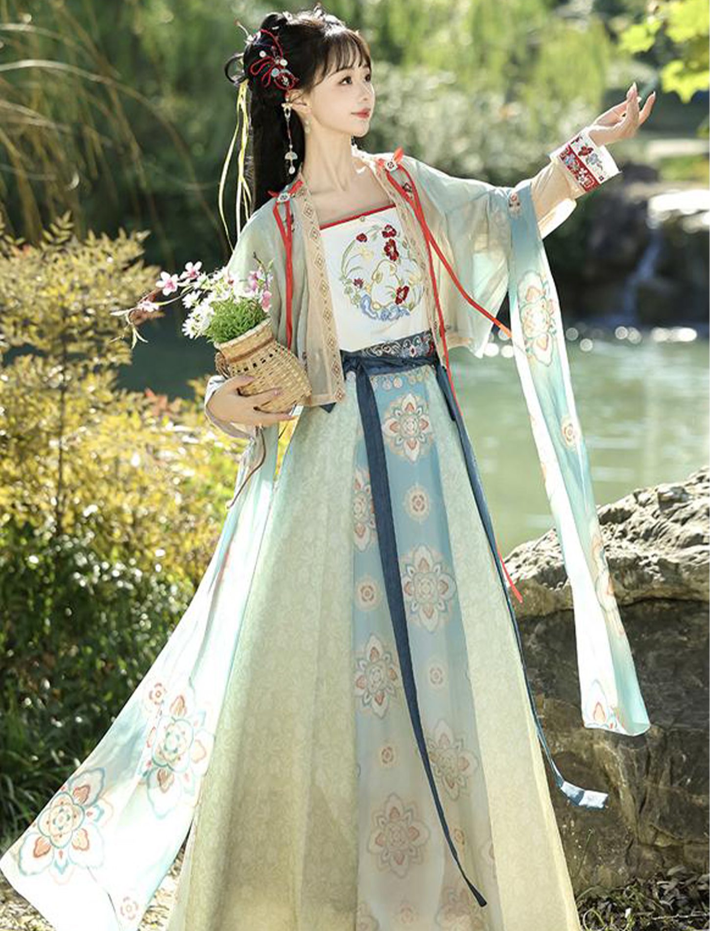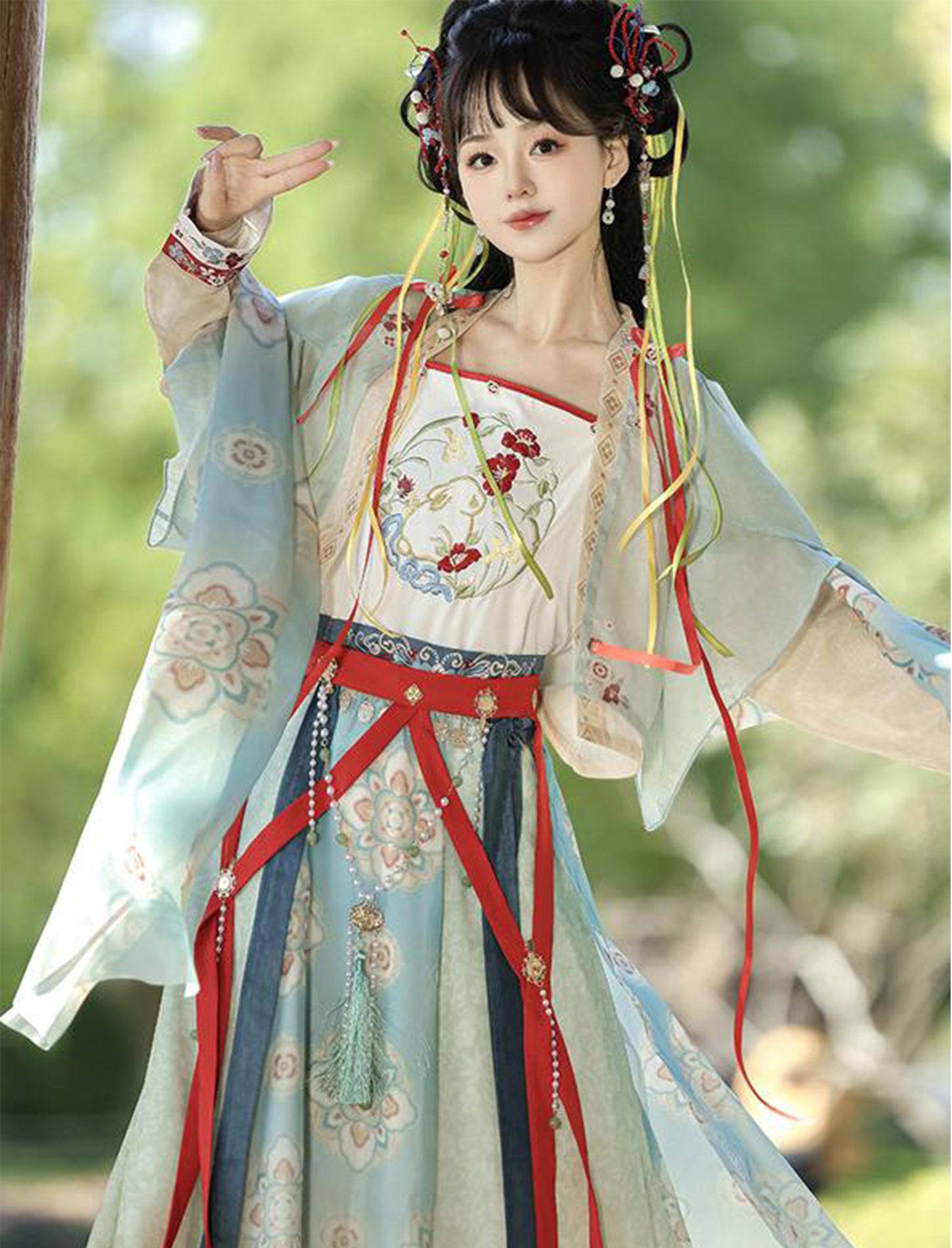 【 山茶 】Tang System Hanfu Red Heavy Embroidery Large Sleeve Shirt Chest-Length Dress Ancient Costume Suit