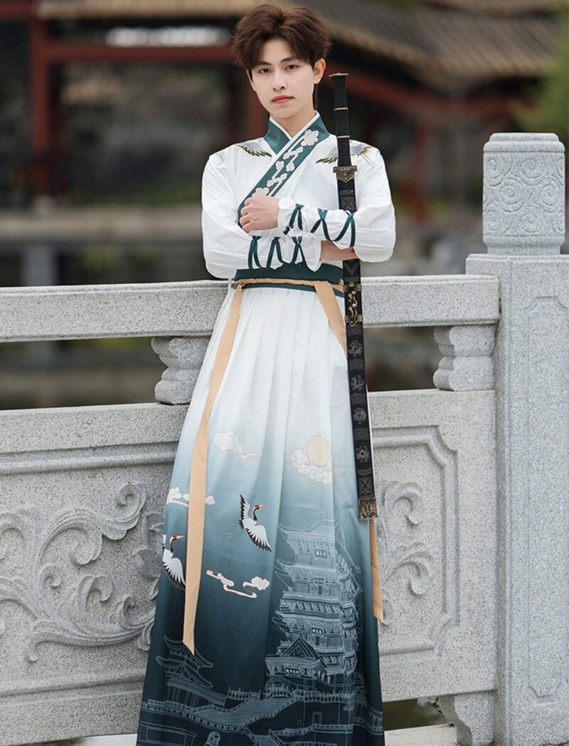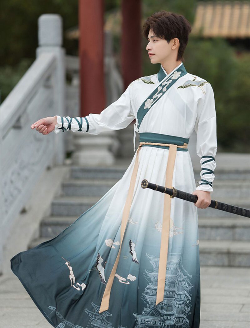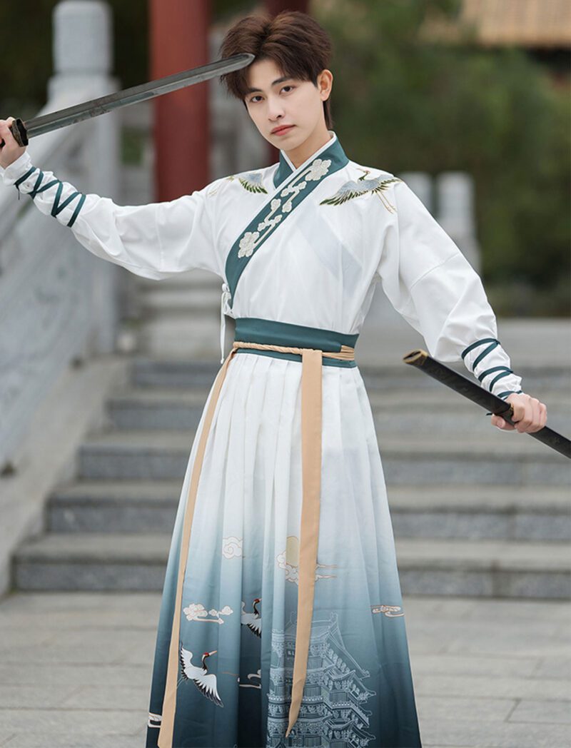 【 云鹤 】Embroidered Cross Neck Hanfu Chinese Style Ancient Martial Arts Costume Suit
