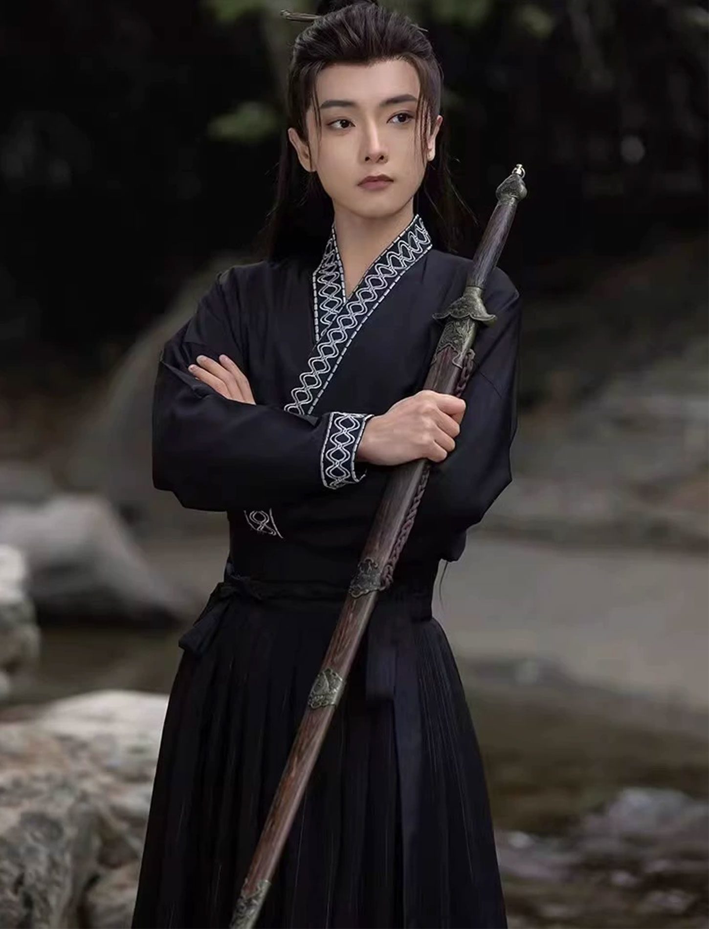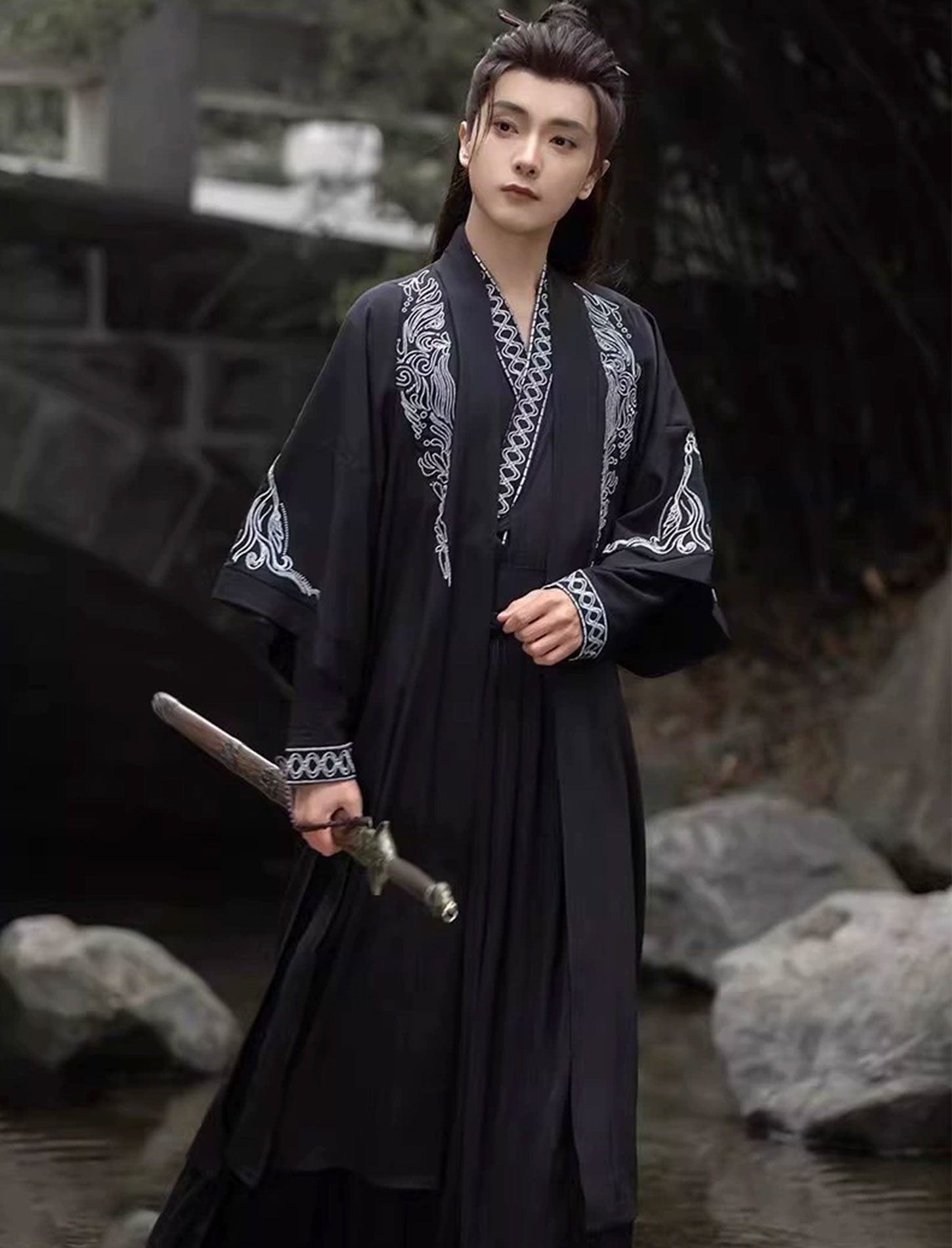 【 波涛万里 】Men's Hanfu Gradient Black Chinese Style Handsome Ancient Martial Arts Chivalry Suit