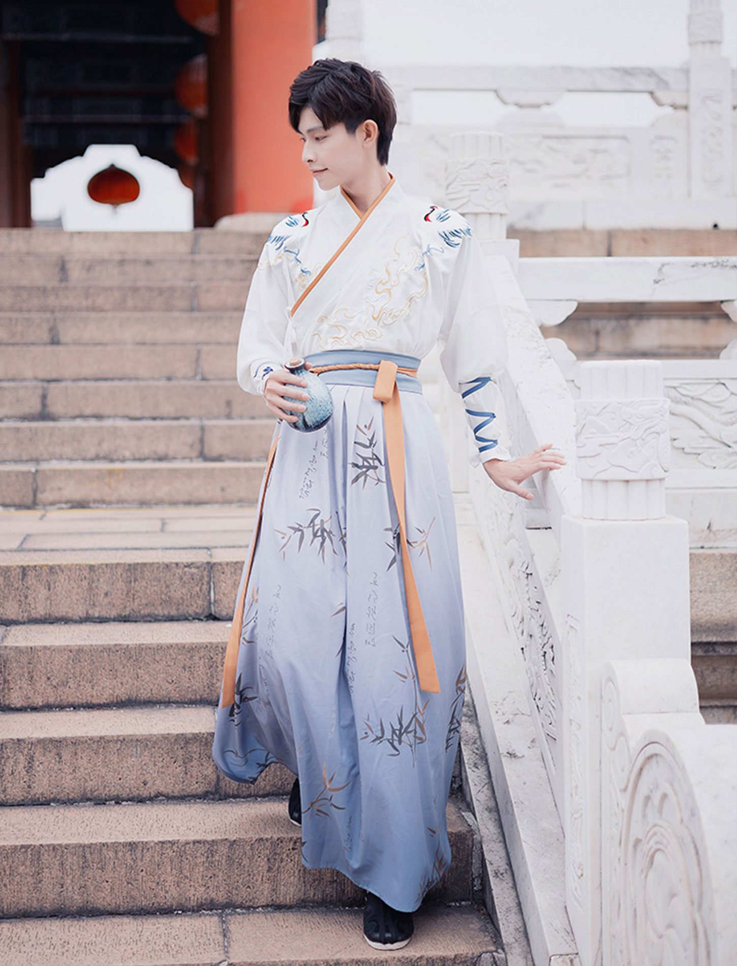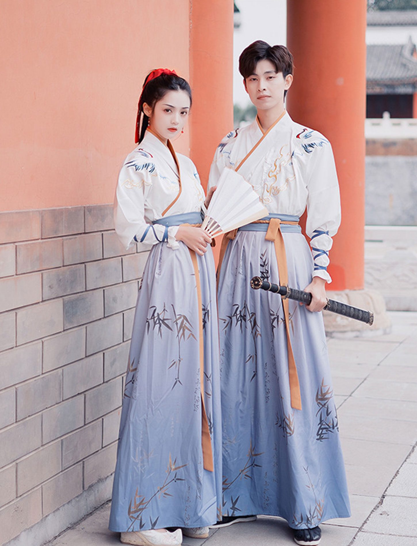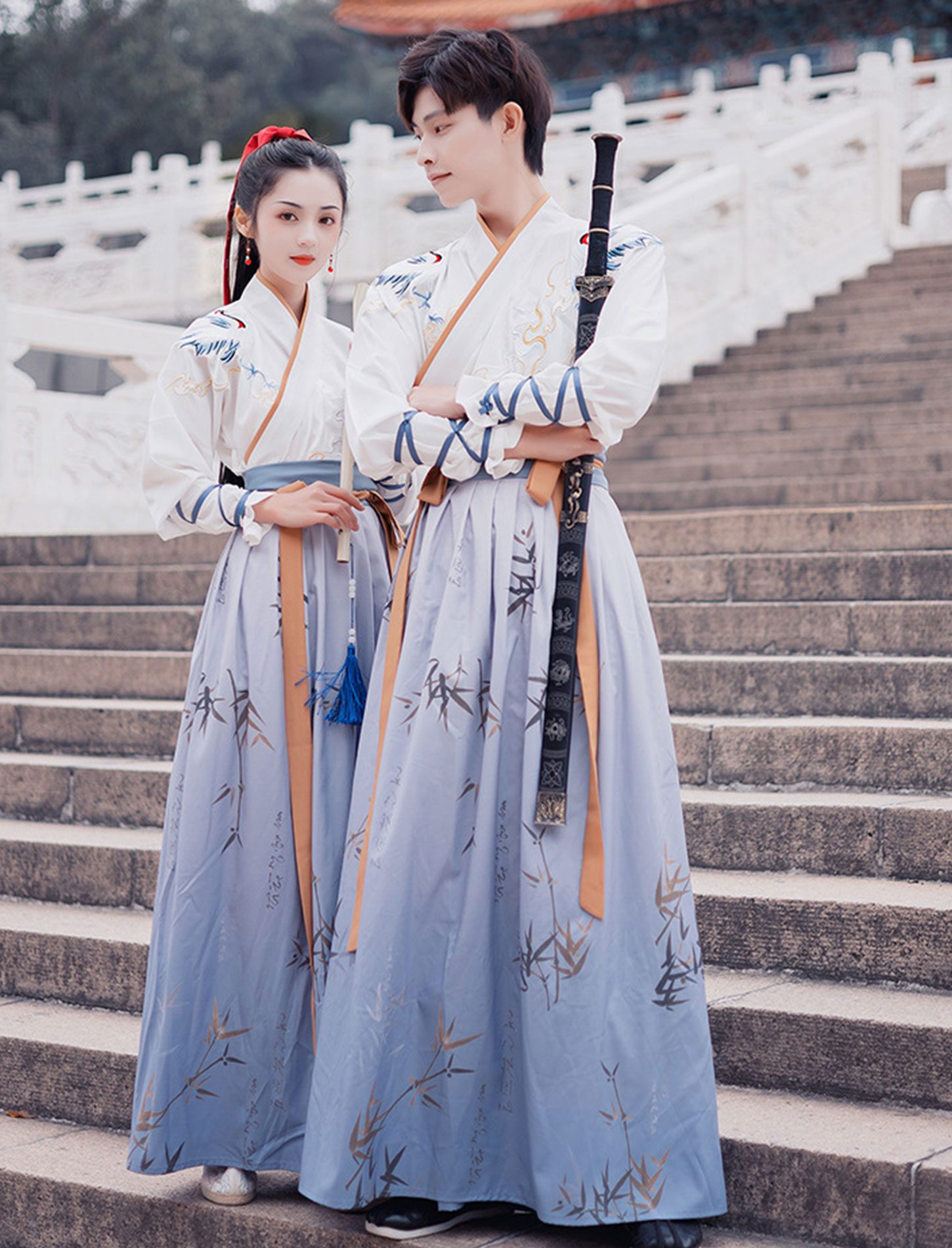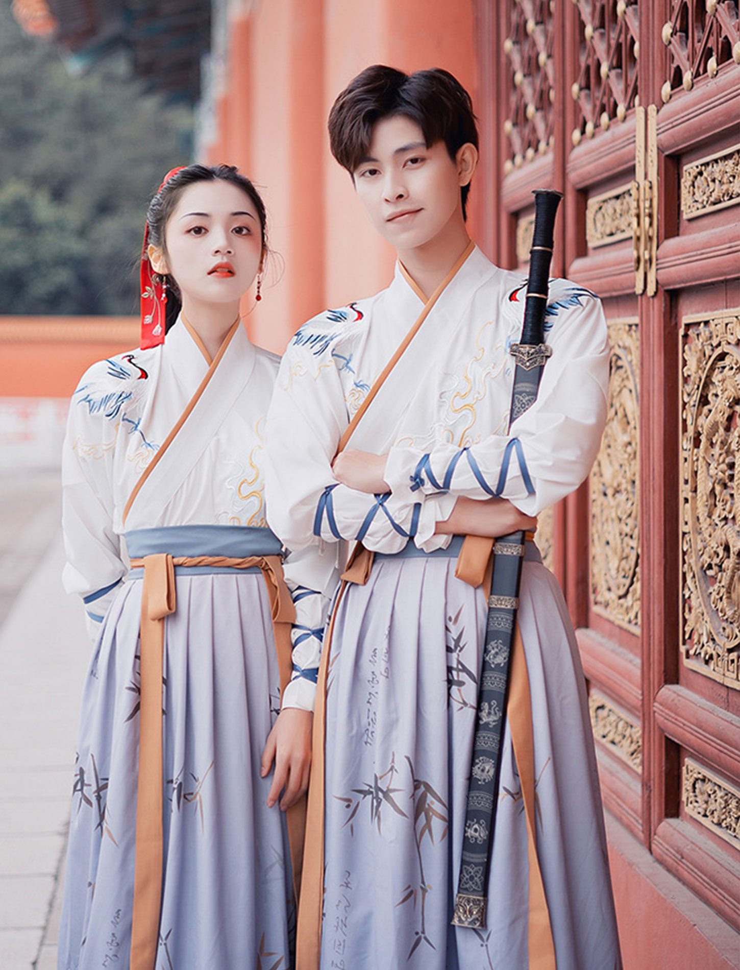 【 鹤吟 】Wuxia Style Hanfu Cross Collar Couple Ancient Costume Suit