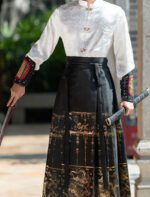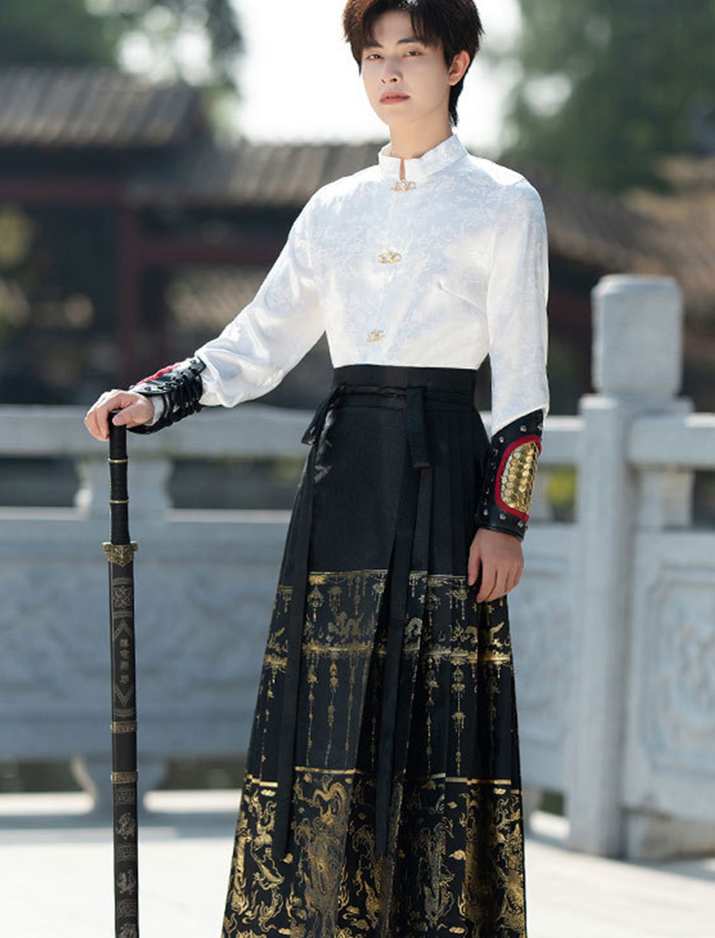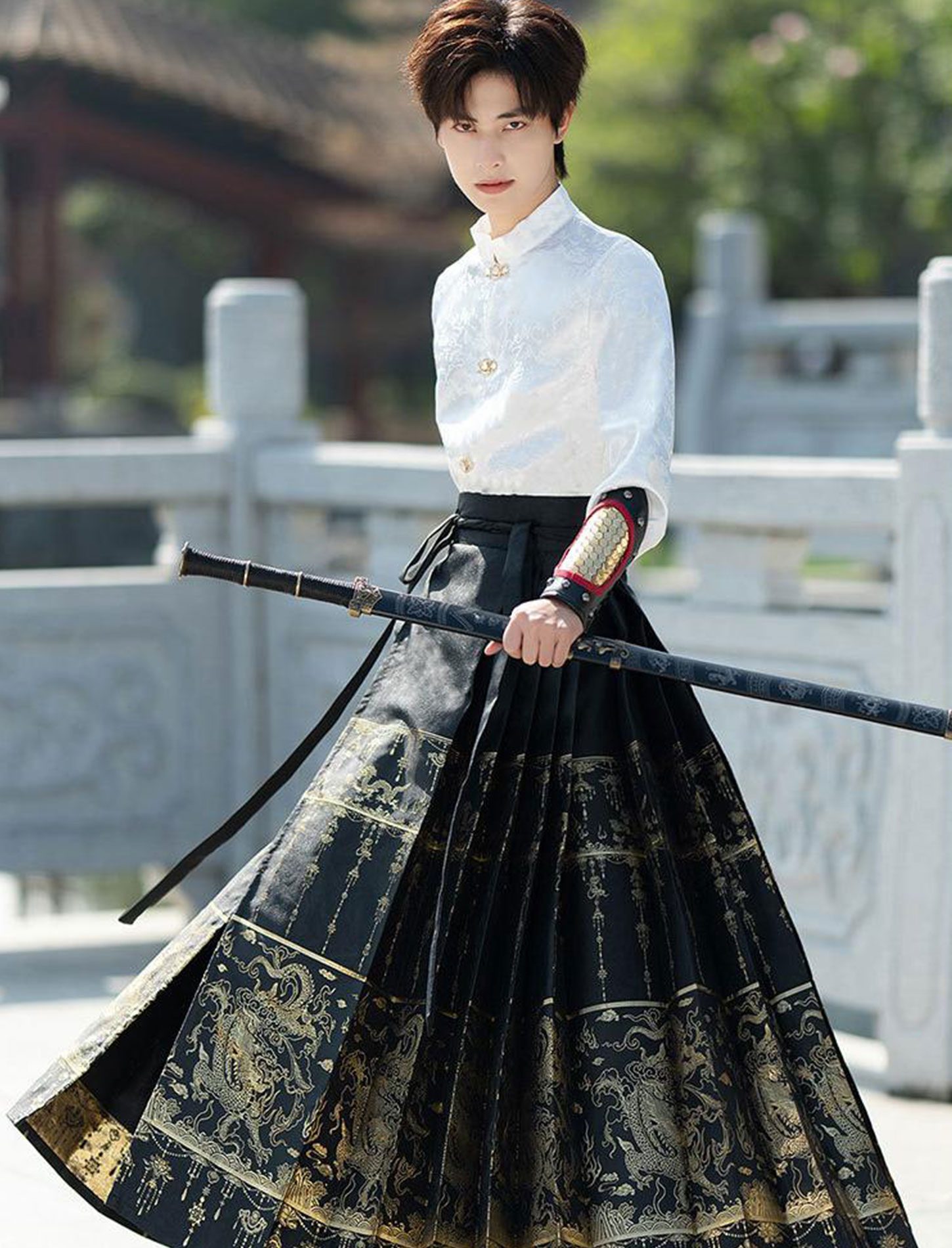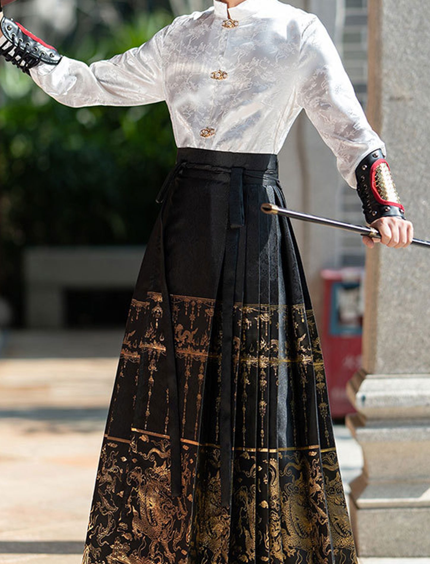 【 星落 】Black And Blue Gold Woven Hanfu Mamian Skirt Han Element Skirt Shirt Set