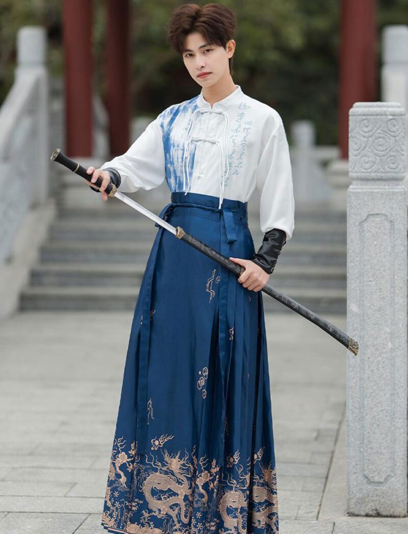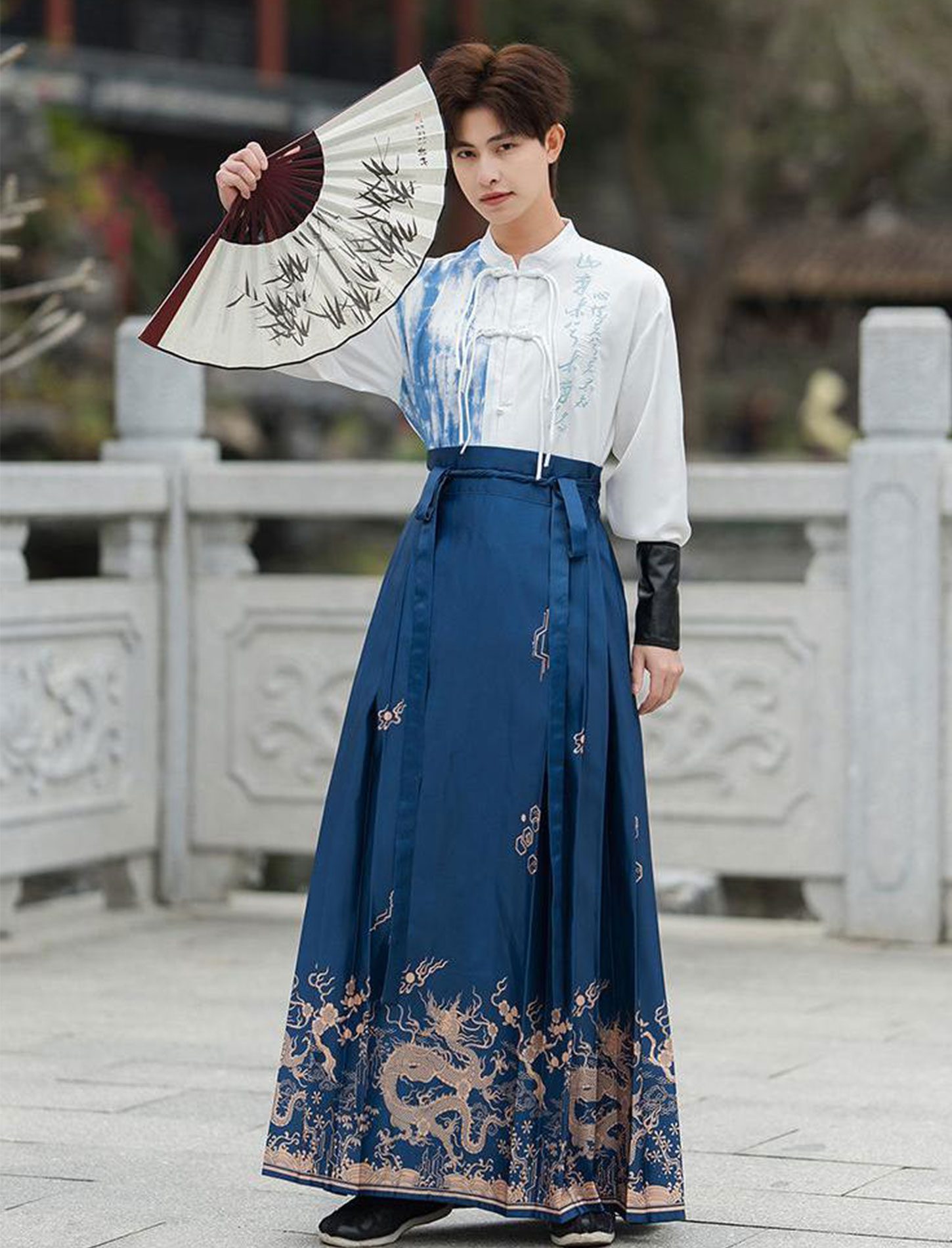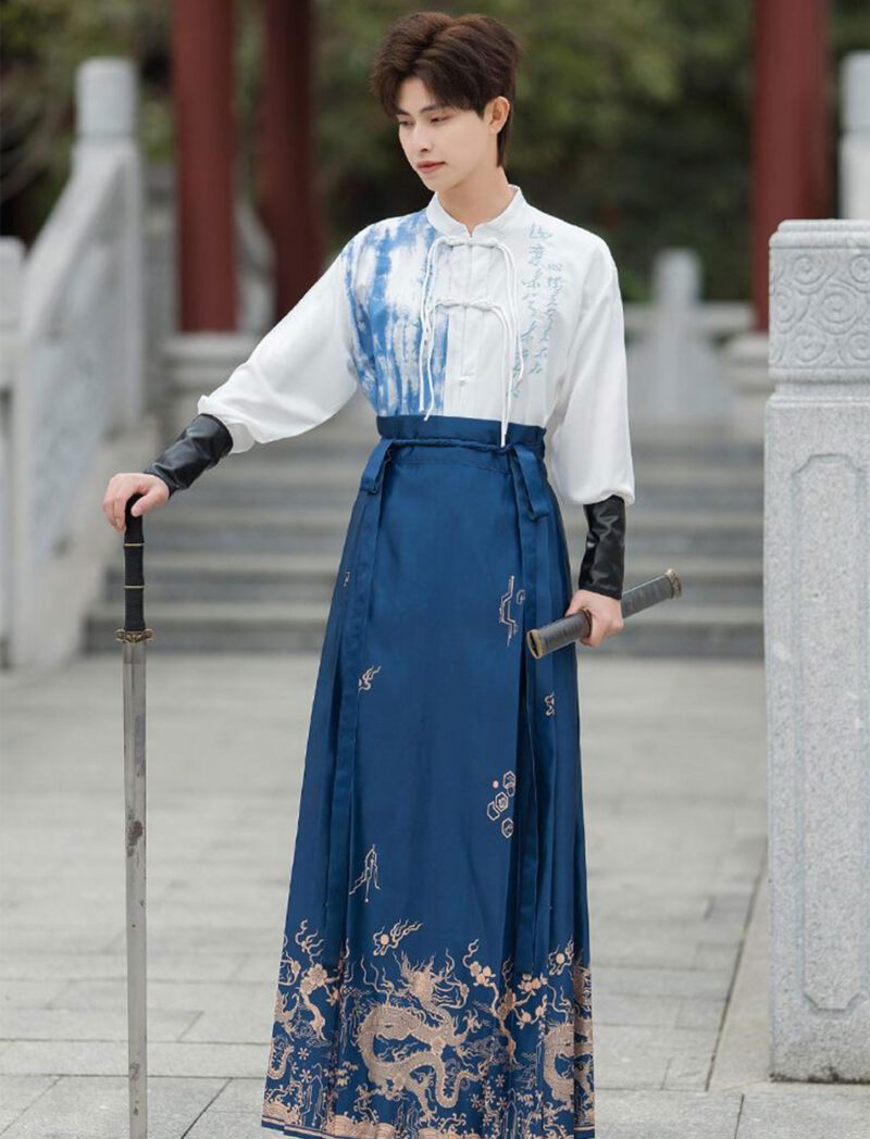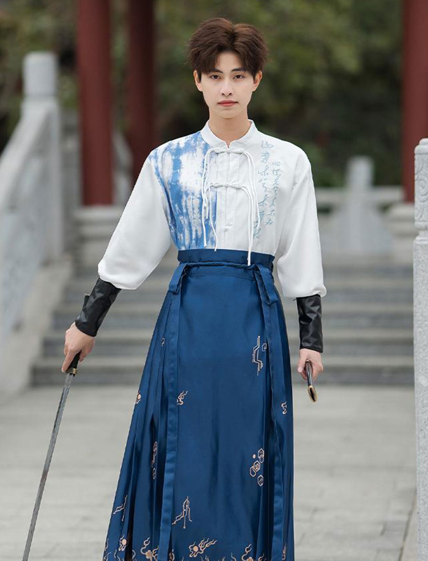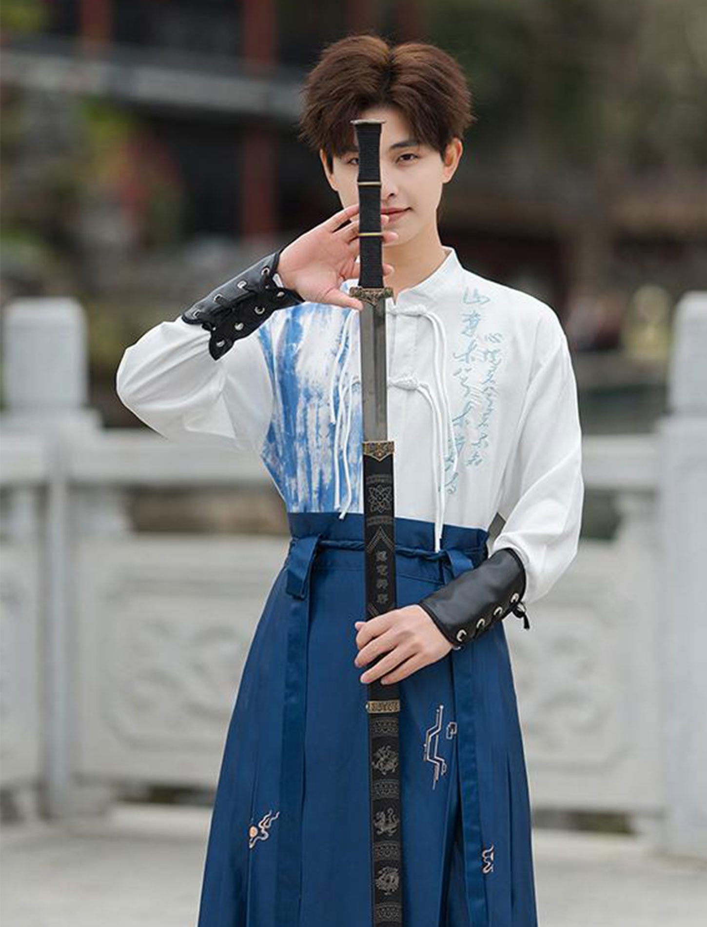 【入青云 】New Chinese Style Improved Hanfu For Man Mamian Skirt Suit Ancient Martial Arts Style