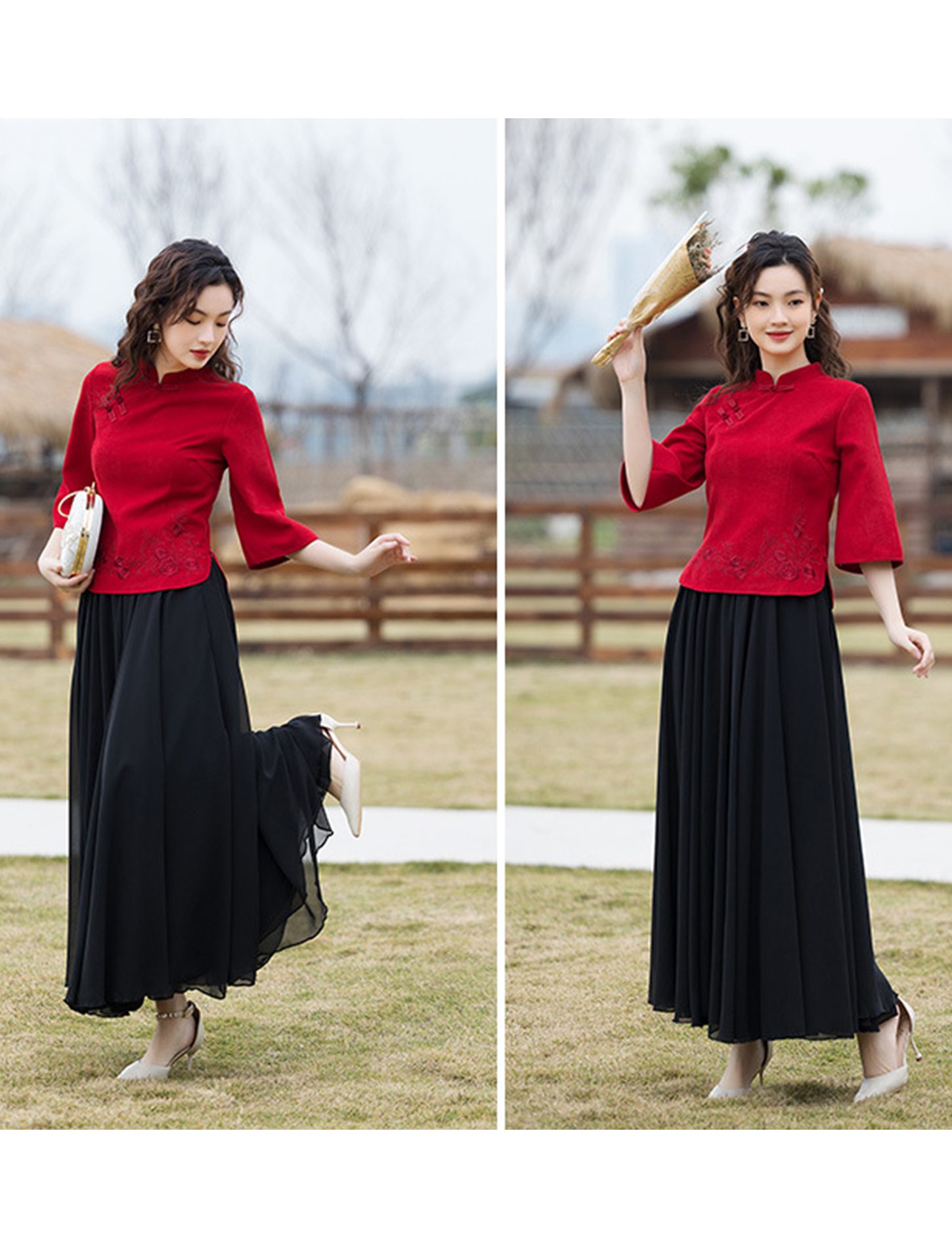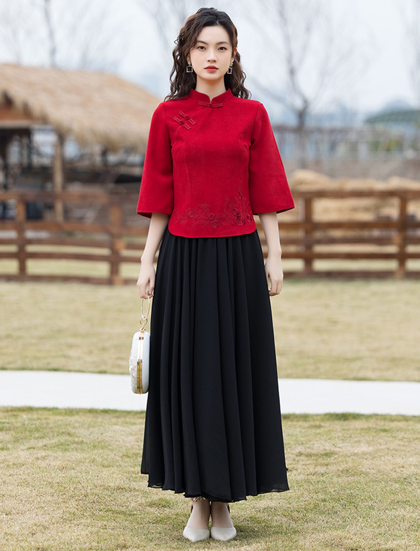 【 心安向远 】Chinese Retro Button Top Improved Cheongsam Suit