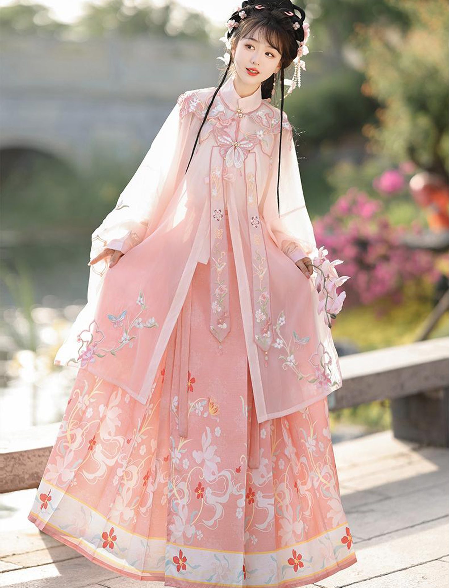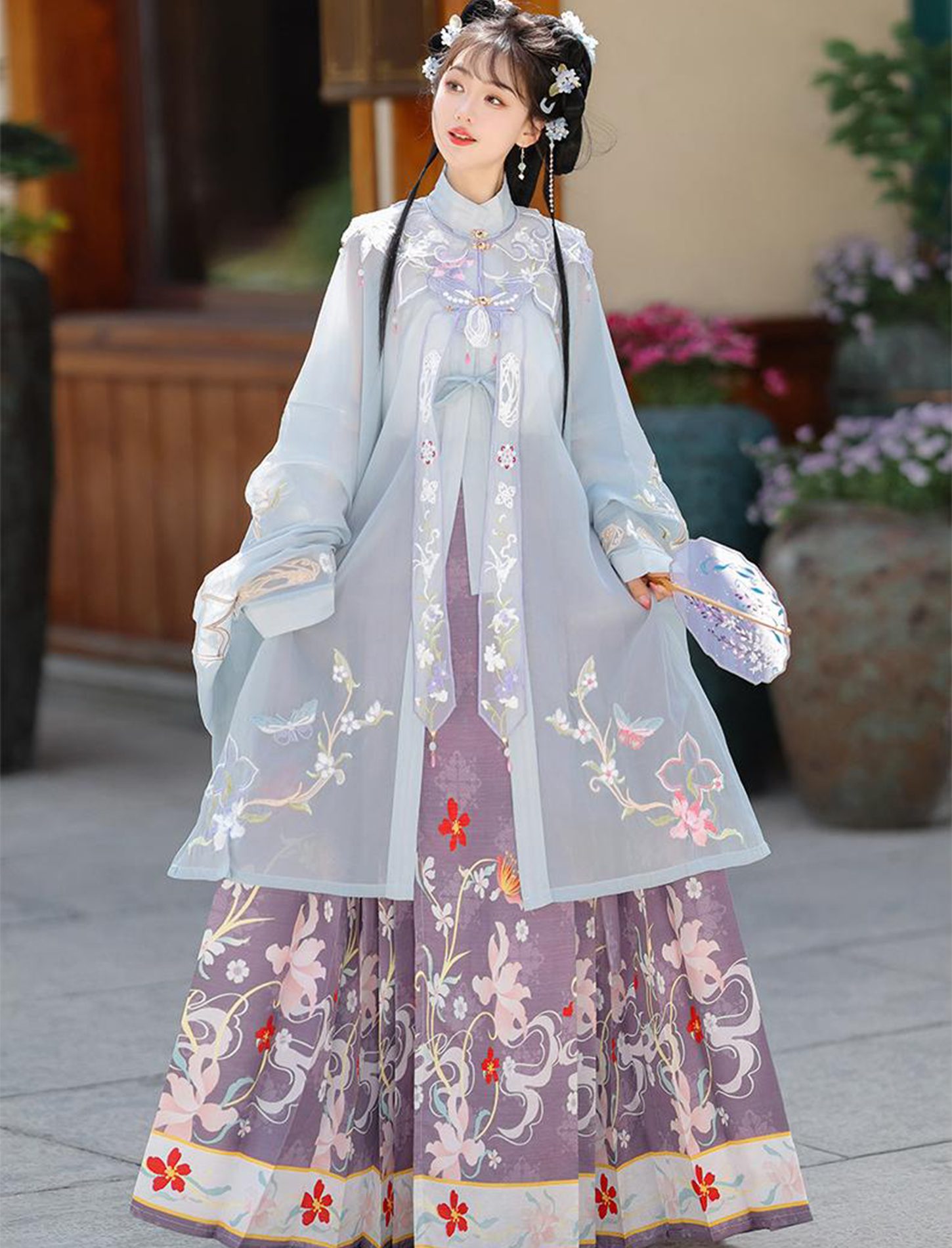 【 花未秧 】Ming Hanfu Mamian Skirt Round Collar Robe Large Sleeve Shirt Ancient Costume Suit