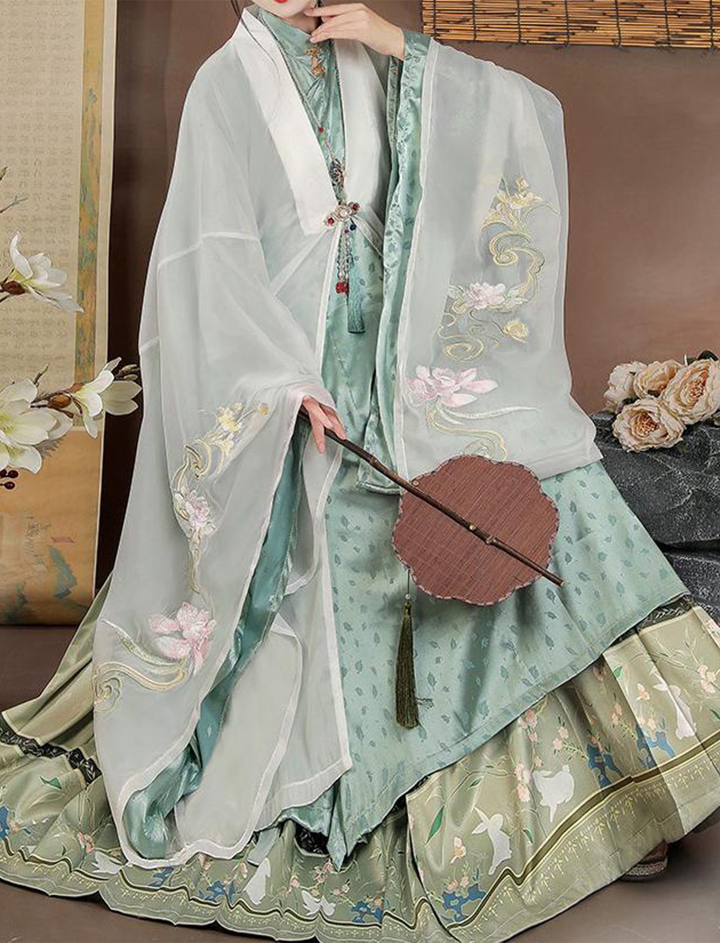 【 花未秧 】Ming Hanfu Mamian Skirt Round Collar Robe Large Sleeve Shirt Ancient Costume Suit
