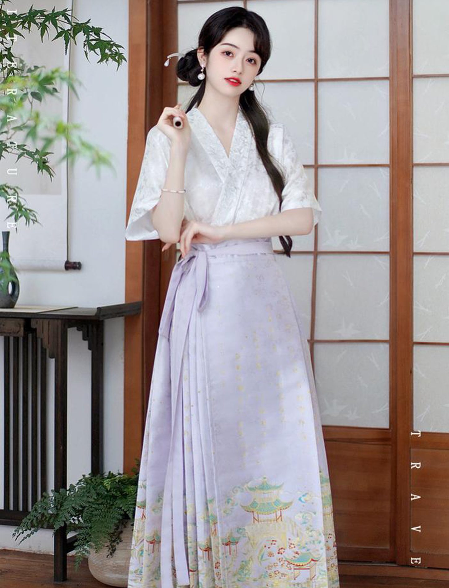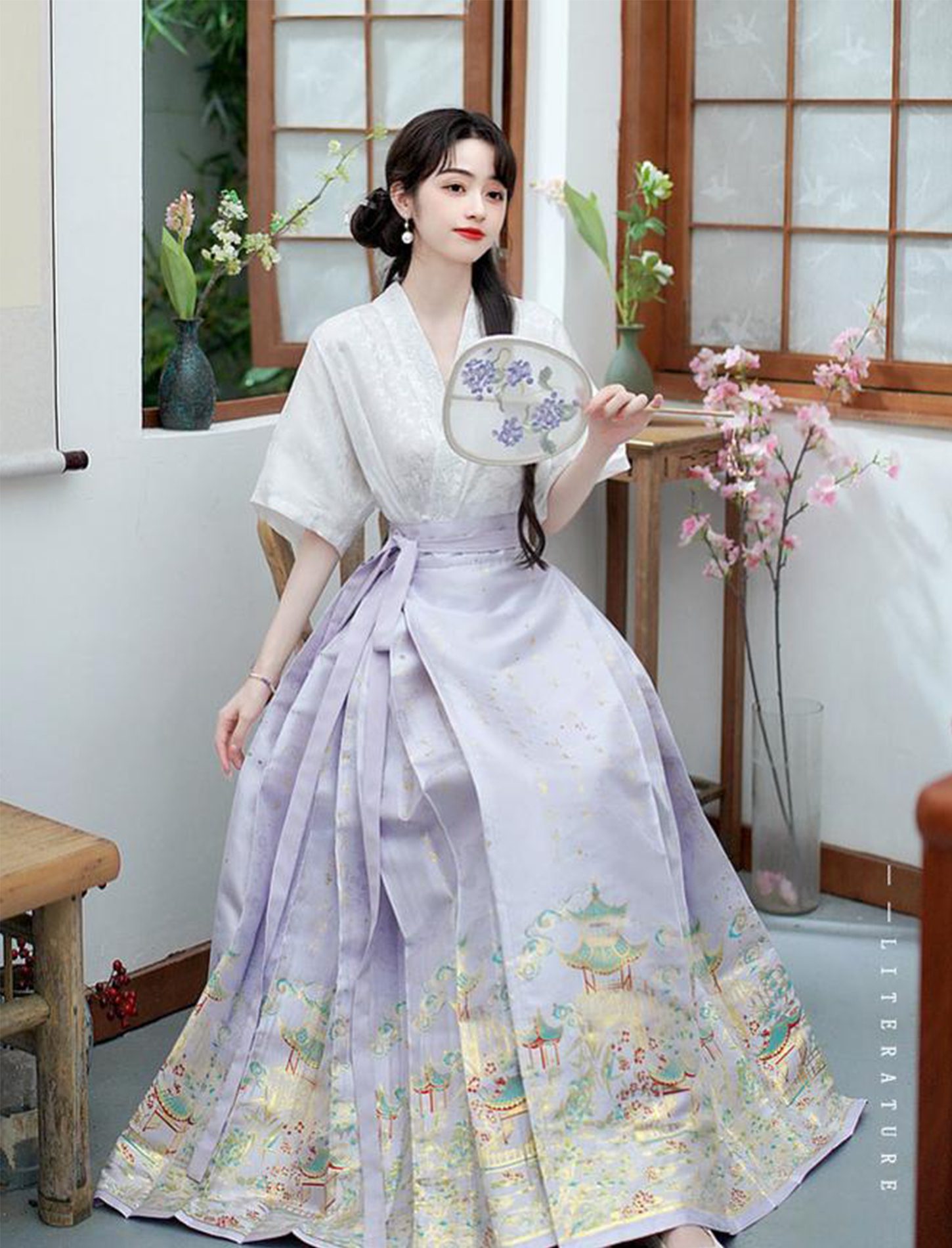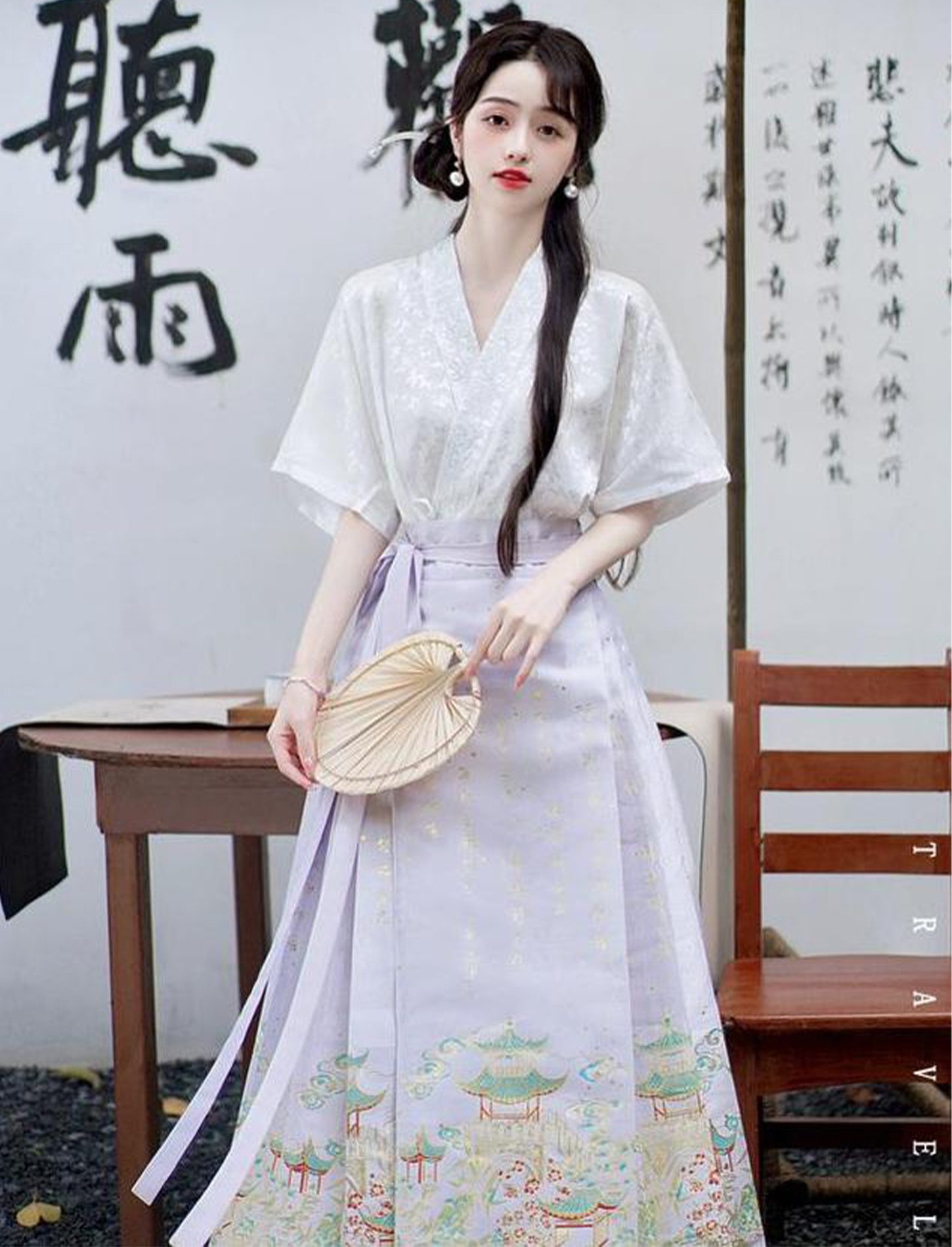 【 梨花 】Imitation Makeup Flower Short Mamian Skirt Suit Ming Hanfu Improvement
