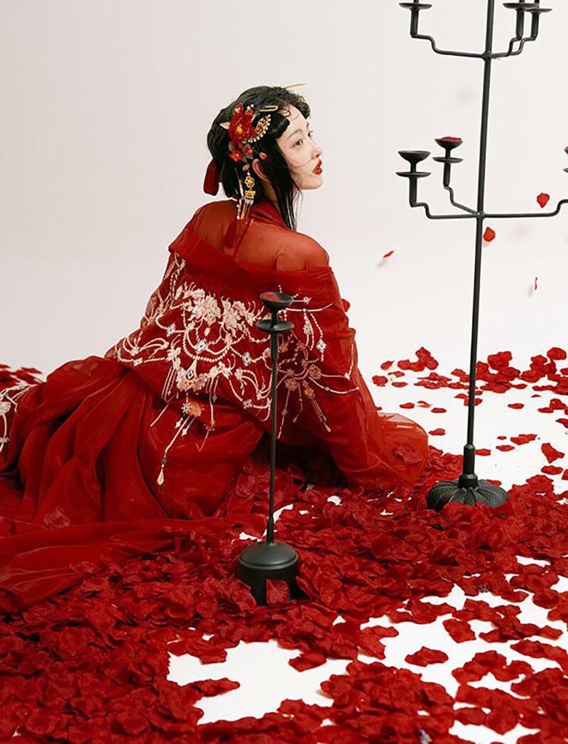 【 红黛 】Tang Dynasty Hanfu Qi Chest Long Dress Heavy Embroidery Big Sleeve Shirt Spring And Summer Suit