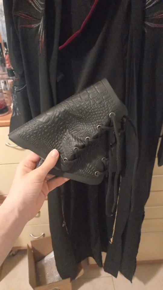 The vest is gorgeous and the embroidery on the sleeves and front is beautiful. I wear a size S and it's perfect. I don't even have the problem of tripping with my feet because I don't even touch it, and I have to say it's excellent. The fabric is very beautiful and also light, not heavy. The only thing is that I had to make another hole in the belt because it was a bit loose.