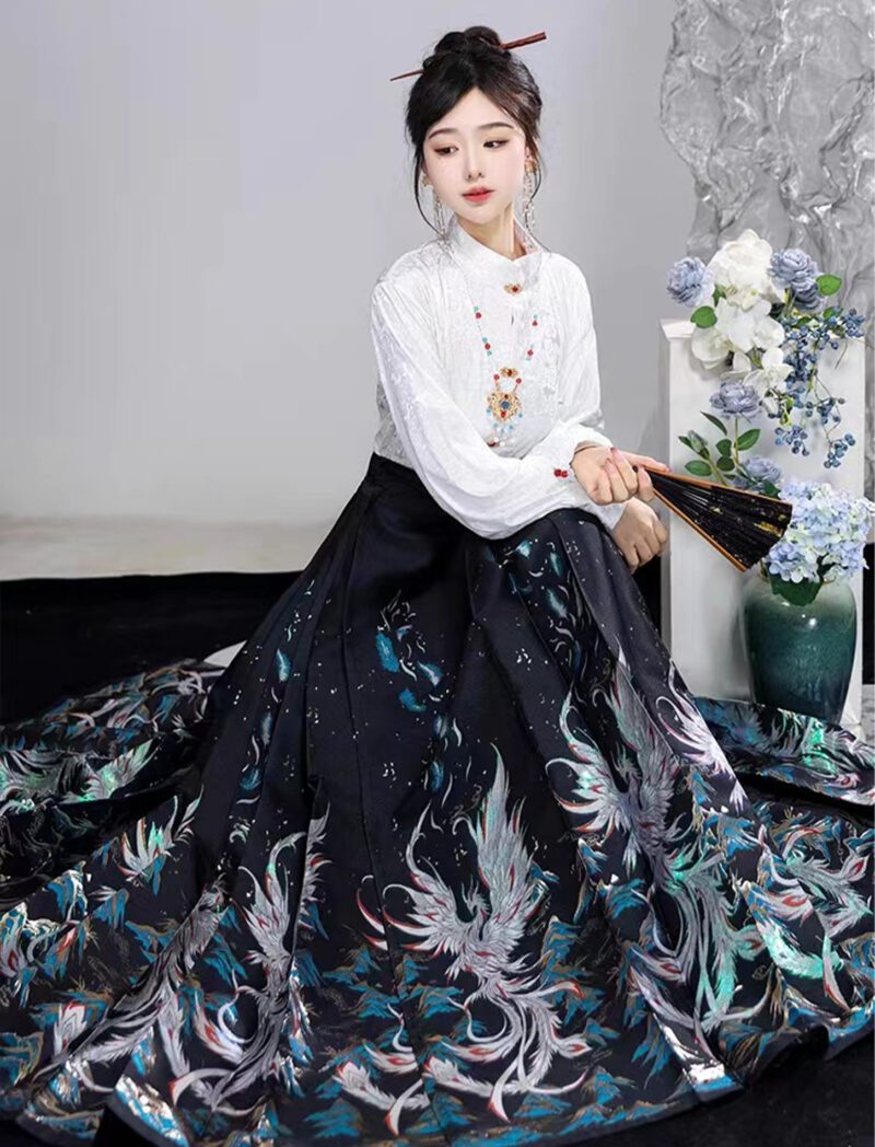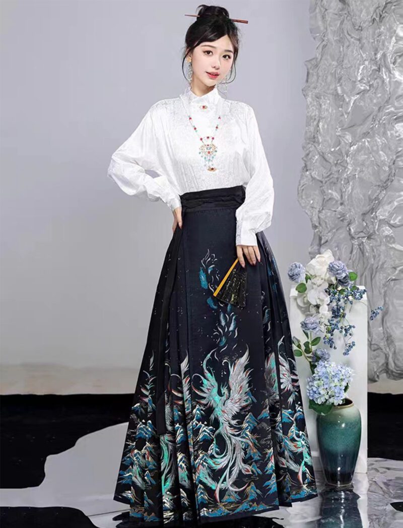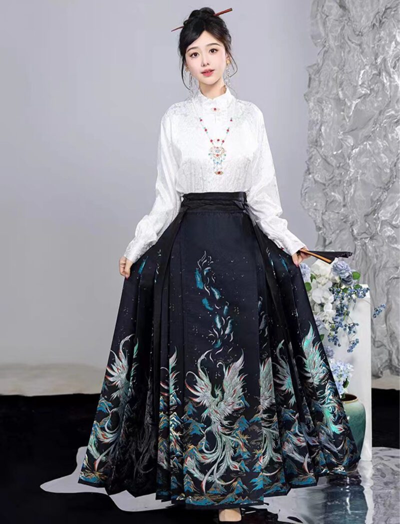 【 青羽 】Woven Gold Makeup Flower Mamian Skirt New Chinese Hanfu Daily Commuter Improved Half-Body Skirt Set